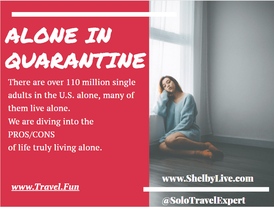 Pros/Cons being ALONE during Quarantine Almost 40 days into America's lock down due to Covid19 and the mental cracks in the foundation are ready to show. Everyone has been affected but what about the single people? There are over 110 million single adults in the USA alone, that's over 45% of adult Americans. How does this affect their mental health? Being completely isolated, many without income and no hopes of upcoming travel, we wanted to check in with our single friends. Solo Travel Expert, Shelby Frenette, has created travel for singles for over 15 years. She knows thousands of singles and has interviewed