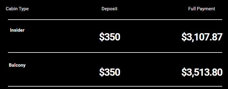*Prices are in US Dollars and Include Shore Excursions, Taxes and Surcharges – Onboard Gratuities are Not Included
