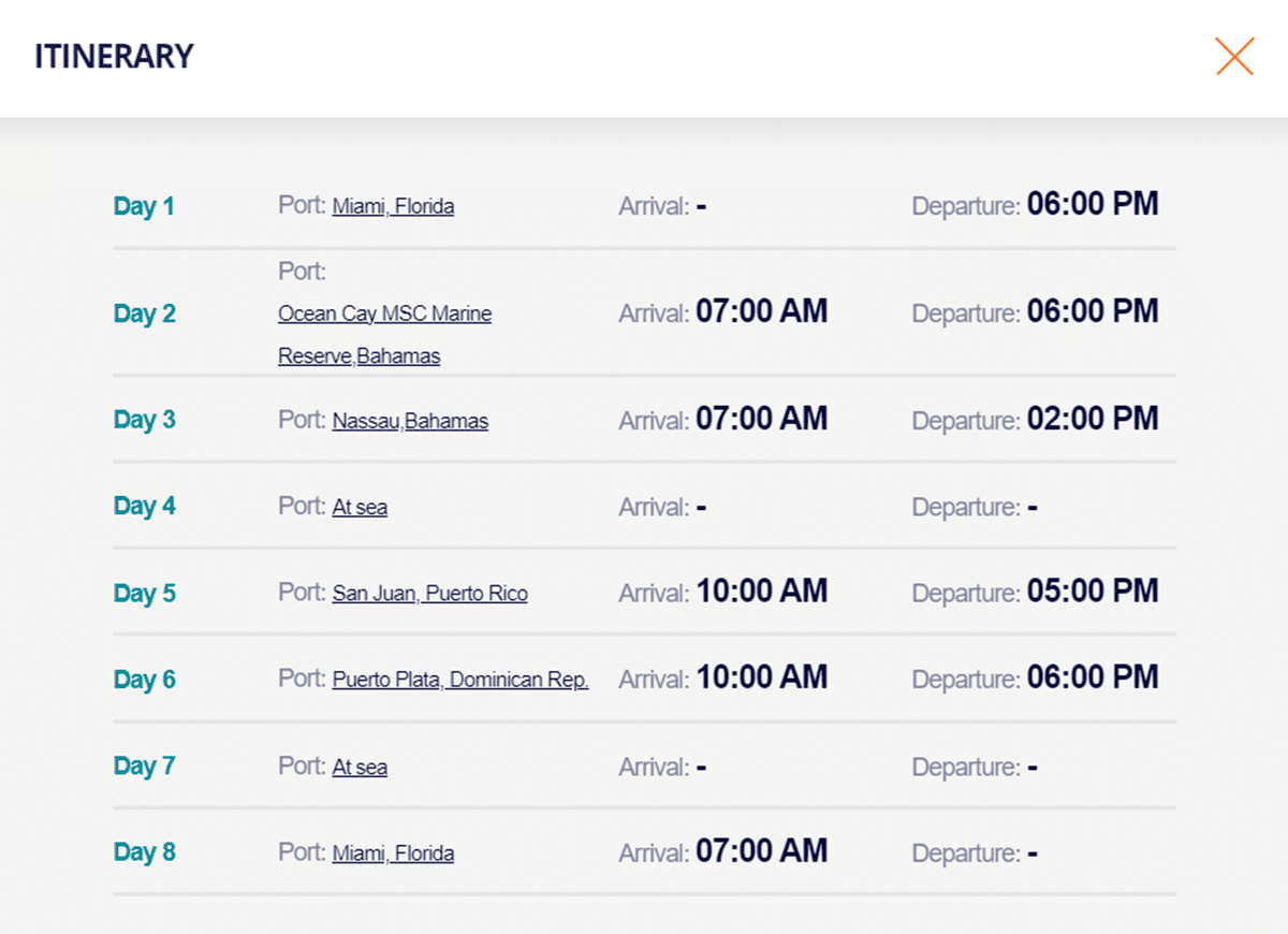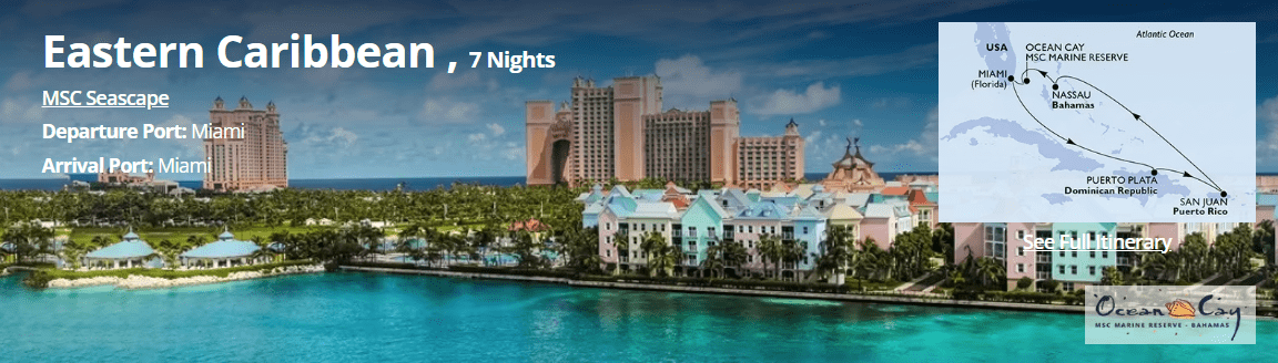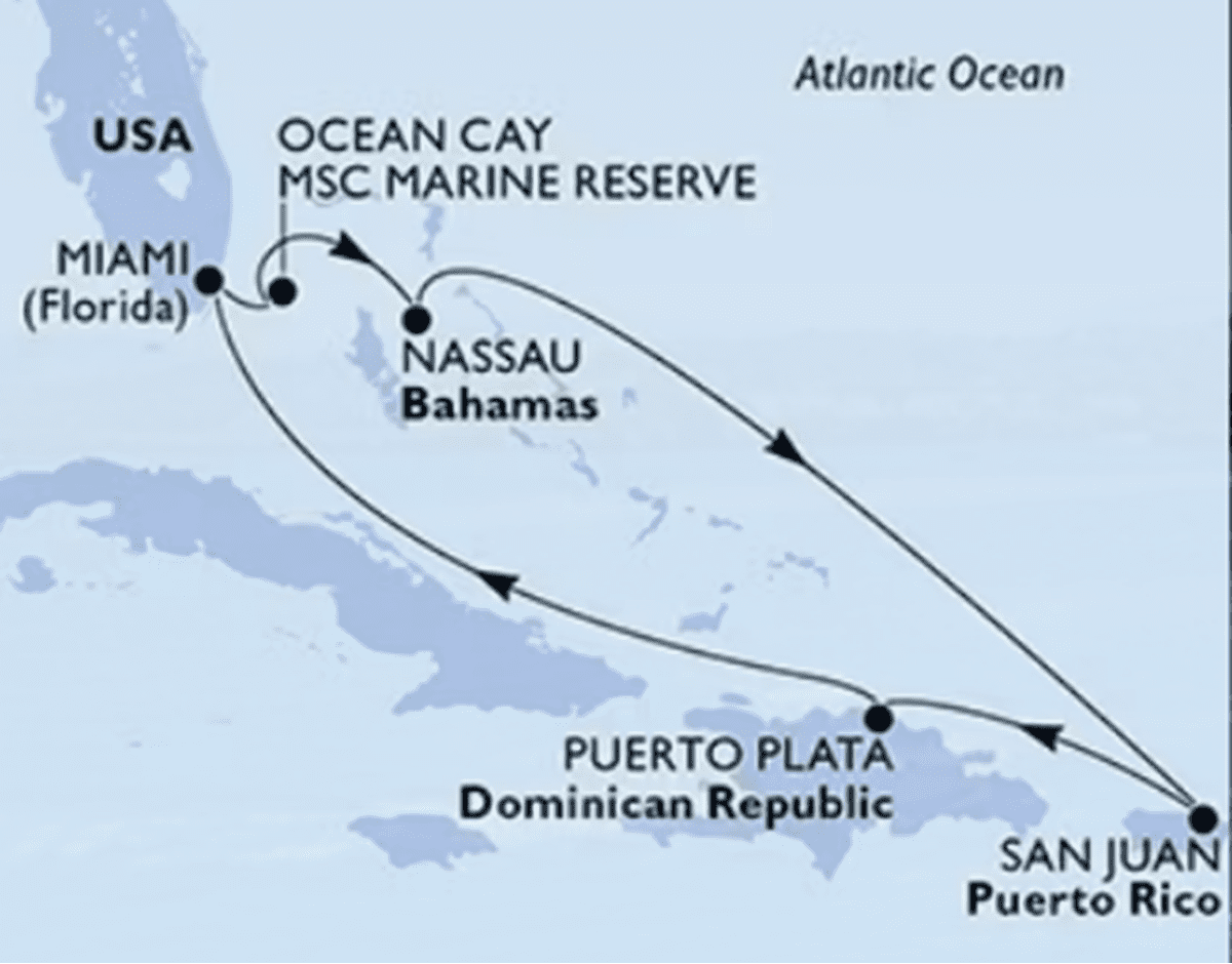 Miami, Ocean Cay, Nassau, San Juan, Puerto Plata, Miami