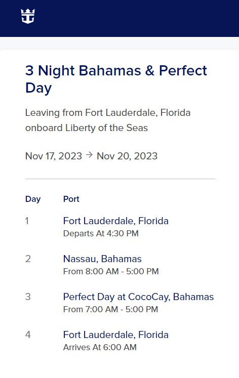 * We must advertise pricing the same way Royal Caribbean promotes on their website