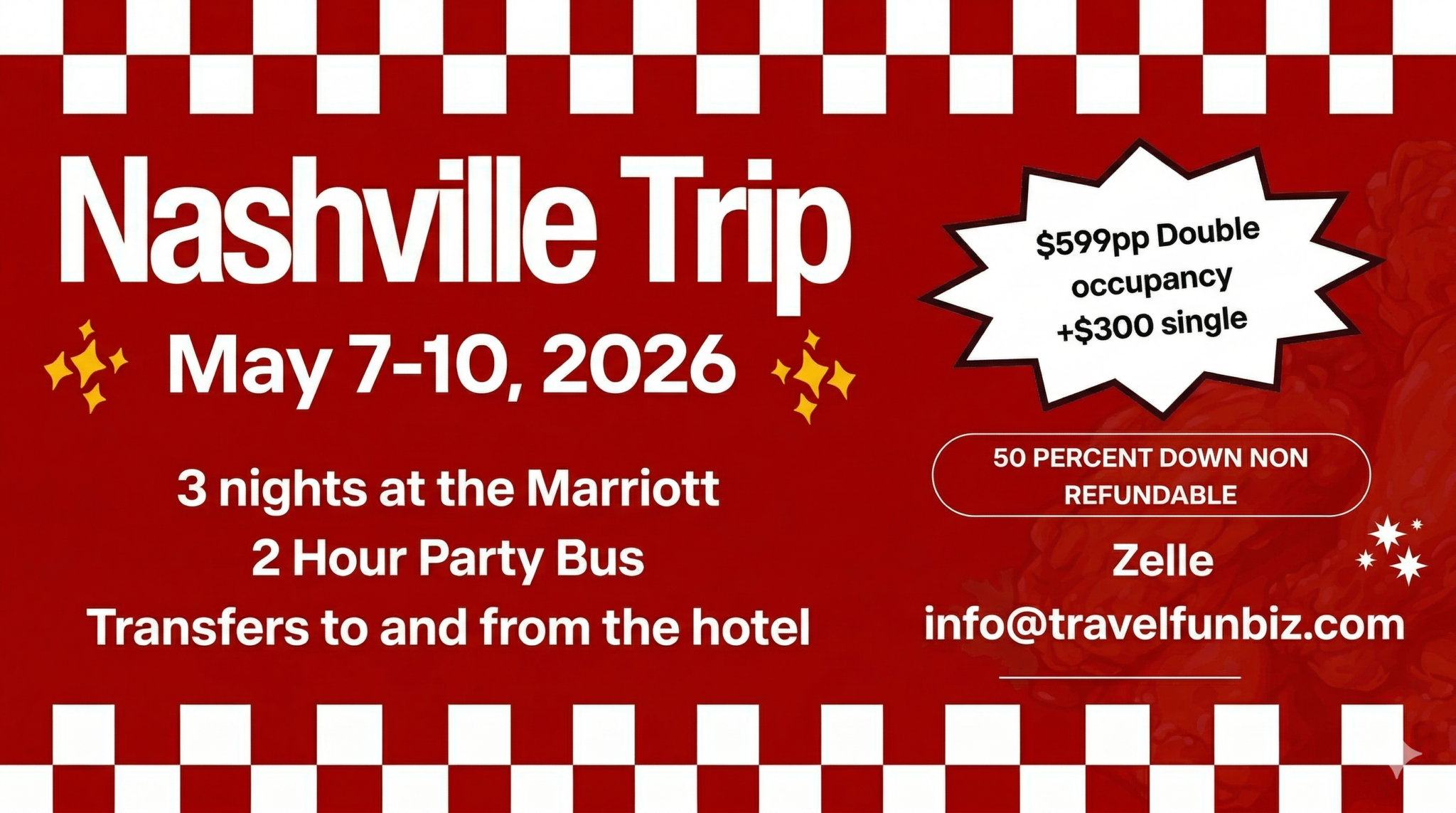 May 7 – 10, 2026 (3 Nights) at the Marriott + 2 Hour Party Bus + Transfers to and from the hotel