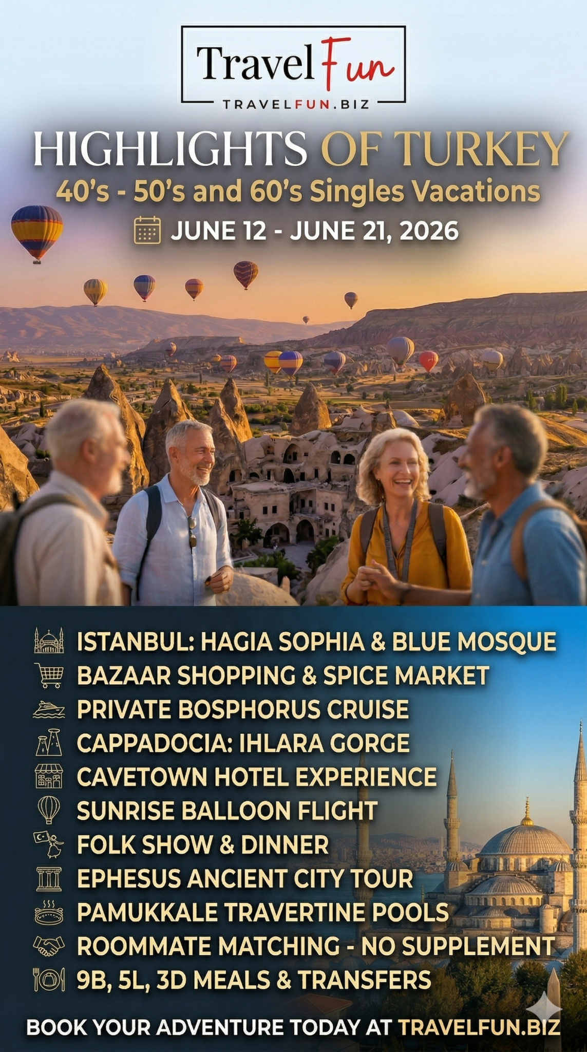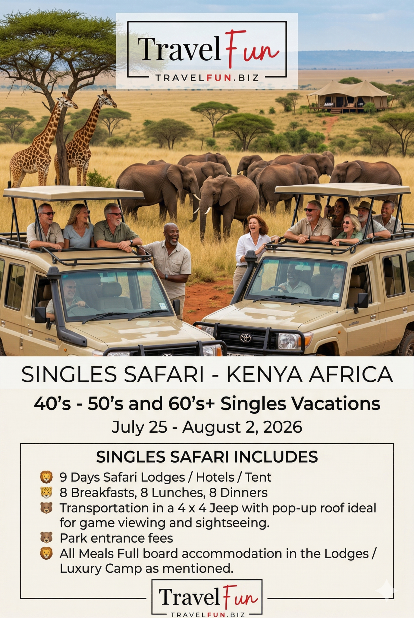 40’s – 50’s – 60’s Plus – Singles Vacations